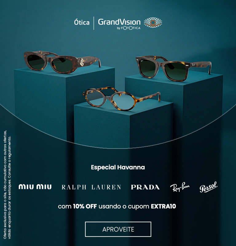 ESSE DESCONTO NÃO É VÁLIDO para óculos de sol das marcas: Arnette, Armani Exchange, Burberry, Bvigari, Chanel, Coach, D&G, DNKY, Dolce, Emporio Armani, Giorgio Armani, Killer Loop, Michael Kors, Miu Miu,Mont Blanc, Oakley, Oliver People, Persol, Prada, Ralph Lauren, Ray-Ban, S, Ferragamo, S. Tacchini, Tiffany, Valentino, Versace e Vogue.